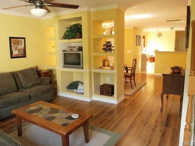 One car garage corner lot townhouse, full of upgrades! Corian counters, laminate wood floors throughout the living room & dining room, marble vanity and tile floor in master bath, french door that leads to the back patio, gas fireplace and a custom wall that separates dining room from living room, which can also be used to display decorative items or a TV. Entire townhouse has been painted grey. Community pool included!!